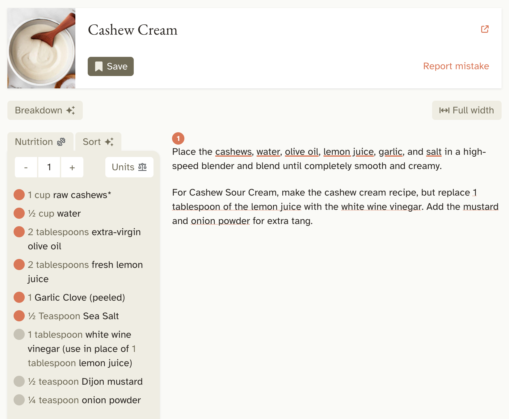 The Make It Dairy Free recipe author makes cashew cream by simply whirring up cashews and water, but I love the recipe here from Love and Lemons.