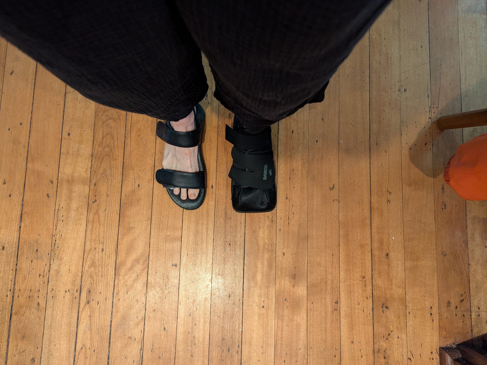 Anyway, I biked to a medical supply store to get a new shoe, and bought this better one that feels more protective and comfortable.