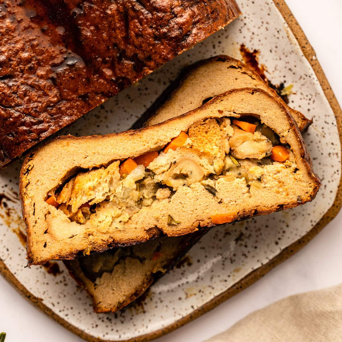 This Vegan Tofu “Turkey” is cozy, hearty and full of juicy flavor! Gluten-Free and made with only 10 ingredients, it’s the perfect holiday centerpiece.