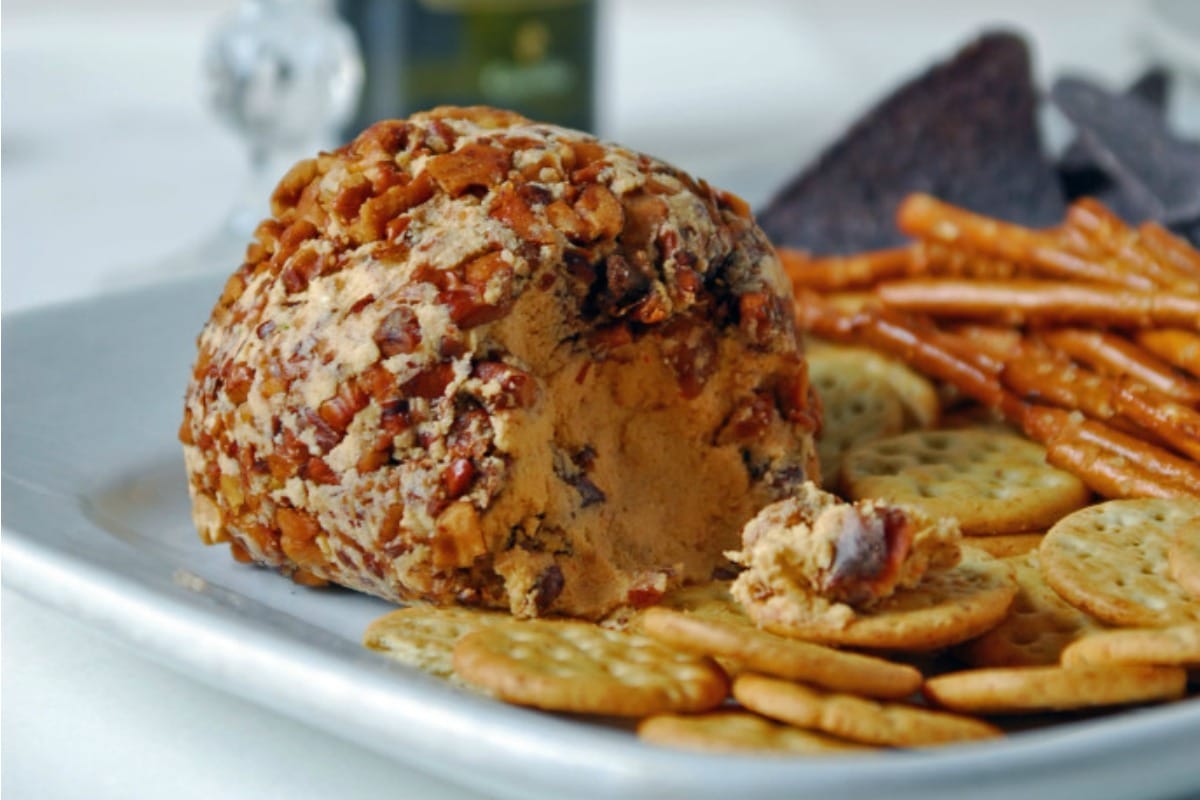 This cheeseball is perfect for sandwiches, savory bagels, or on its own. Also, pair with wine, preferably a sweet one, and with lots of crackers!
