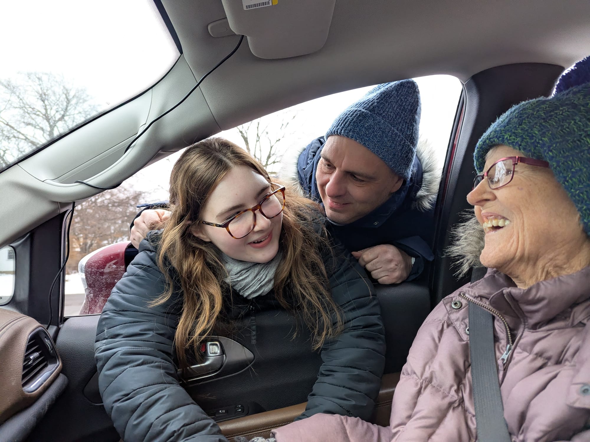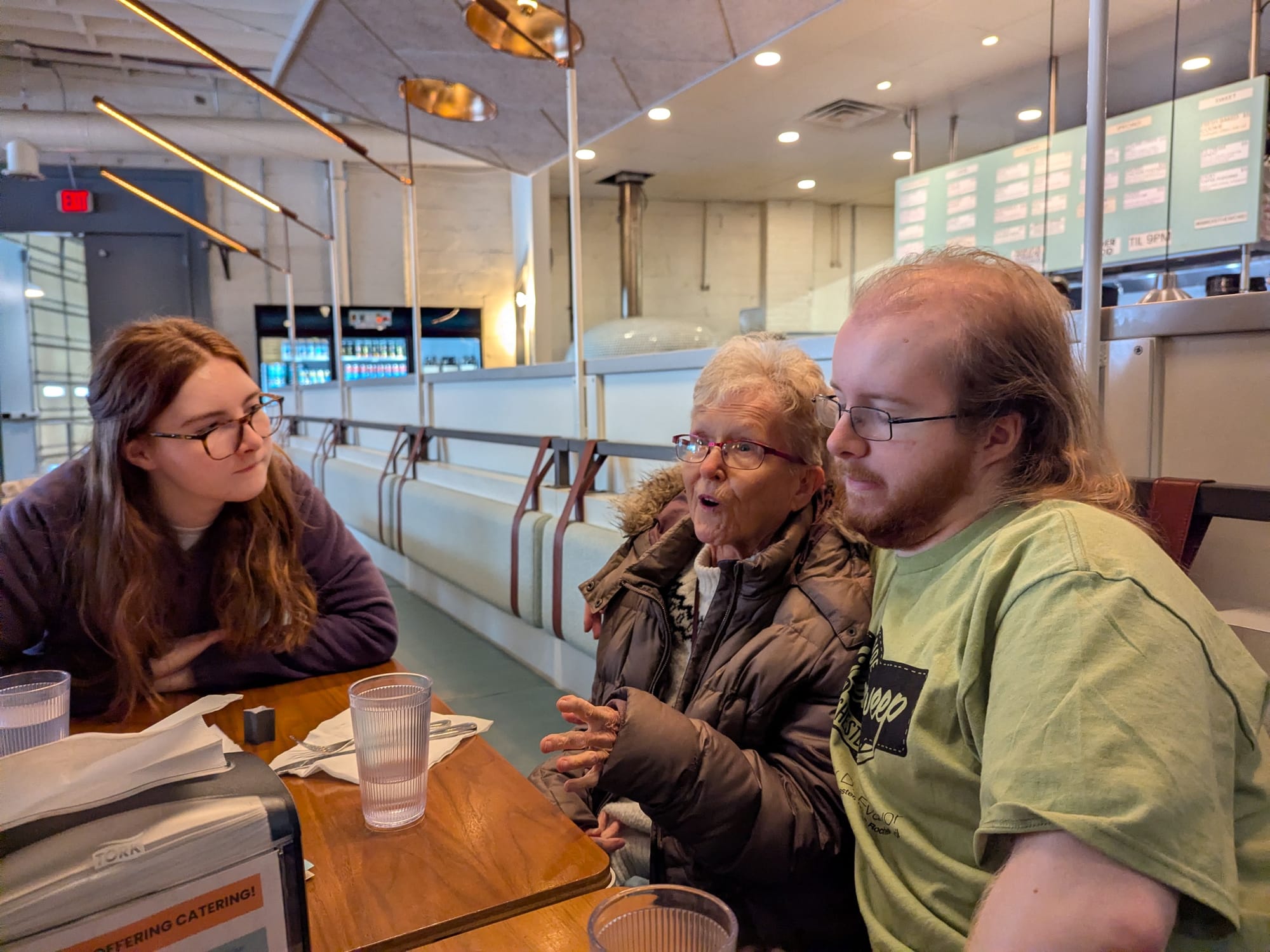 We had the perfect Christmas present for Babs! We'd fly her out for a visit, a little before the holidays to try to make it less stressful with fewer weather and volume of people delays. The plan seemed pretty simple: I'd leave Rochester around 6 a.m., get to Des Moines around 10 a.m., pick up the rental car, drive to Altoona to get Mom, we'd head back to the airport around 3, grab a 5'ish flight from Des Moines to Detroit, then Detroit to Rochester, and we'd be back at our house by 11 p.m.