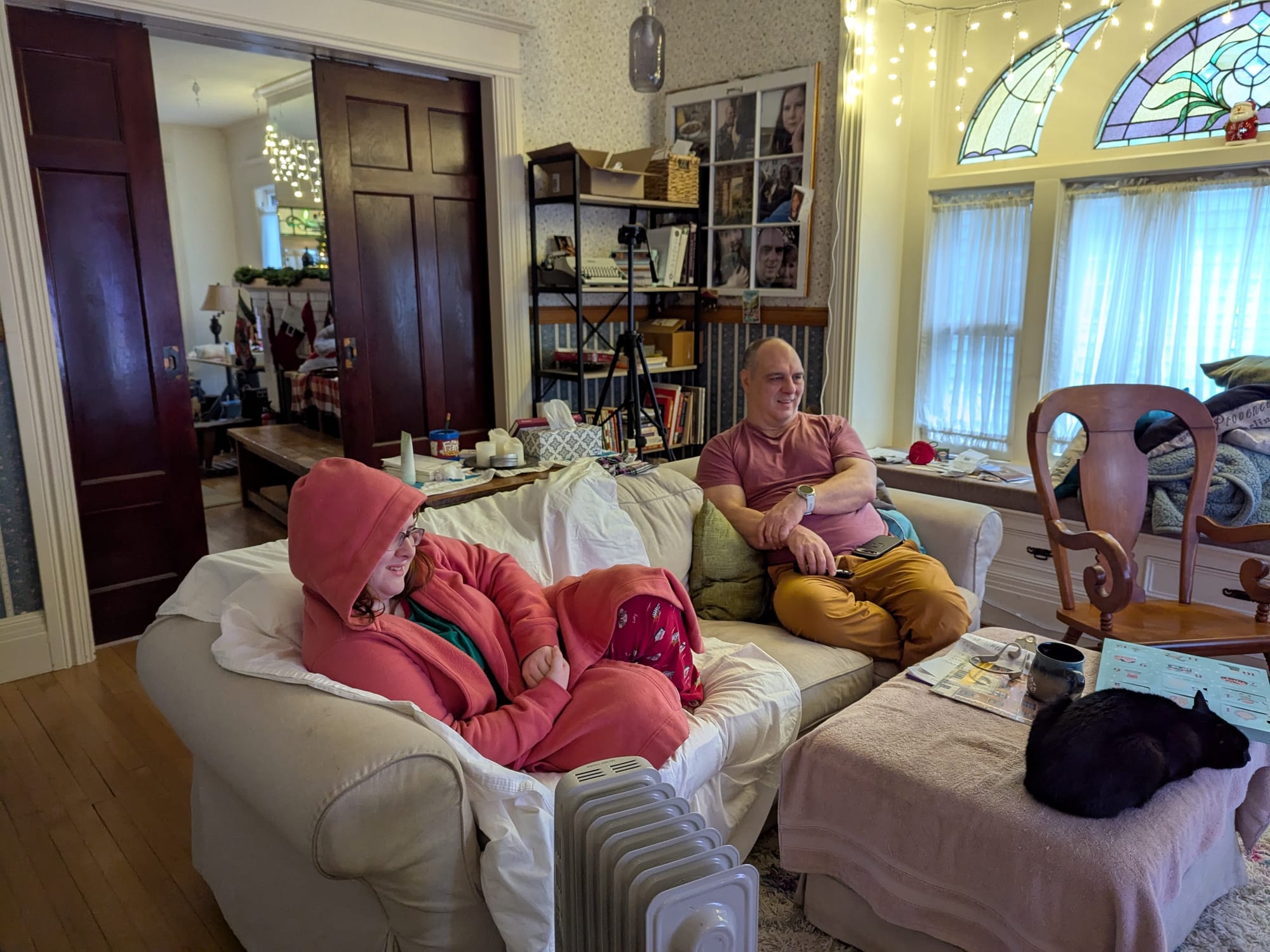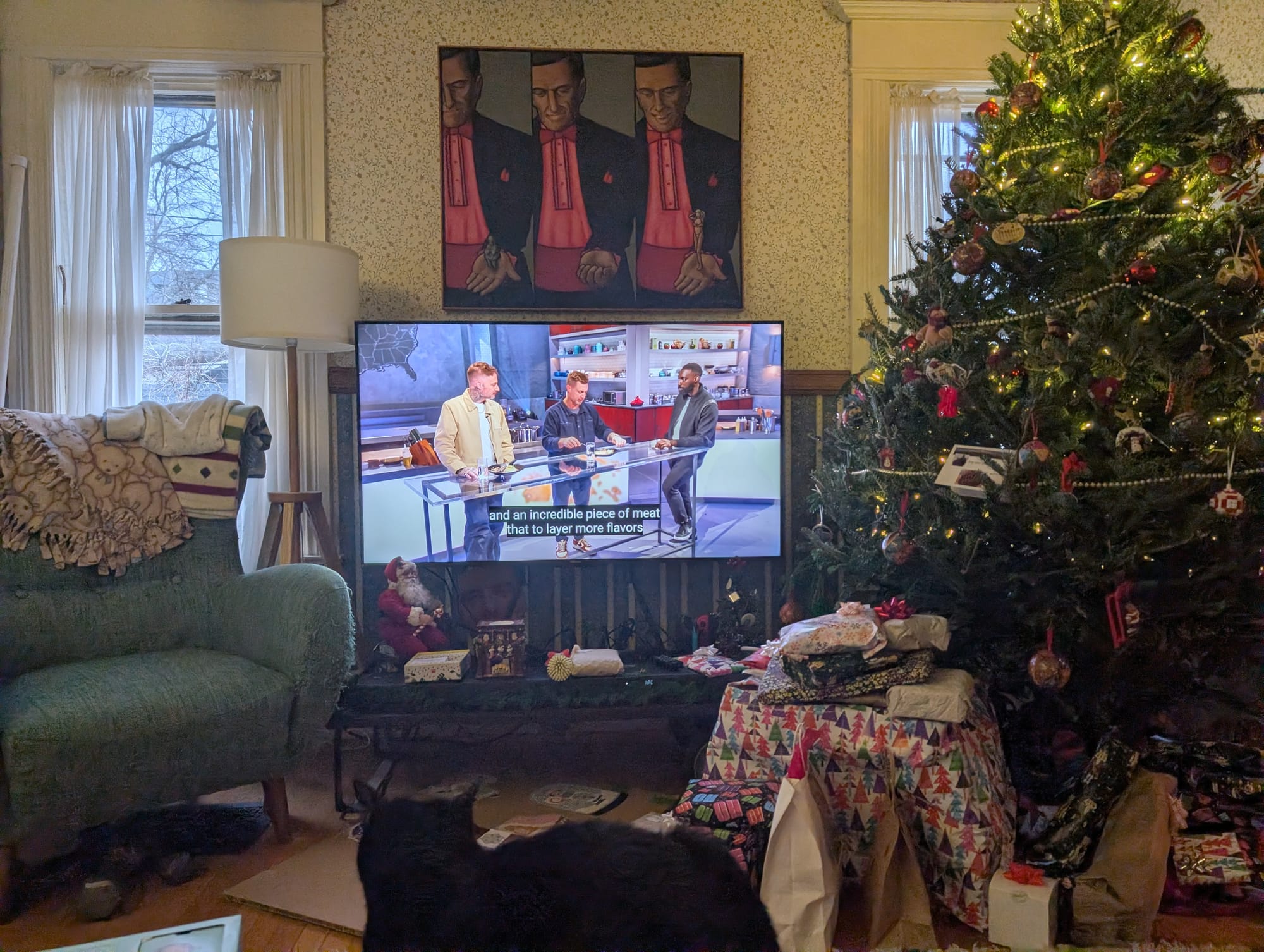 Christmas Day was equally relaxed. Buds and I were up early and were joined by Monkey who watched some of our favorite cooking show with us while we waited for the other family members to awaken.