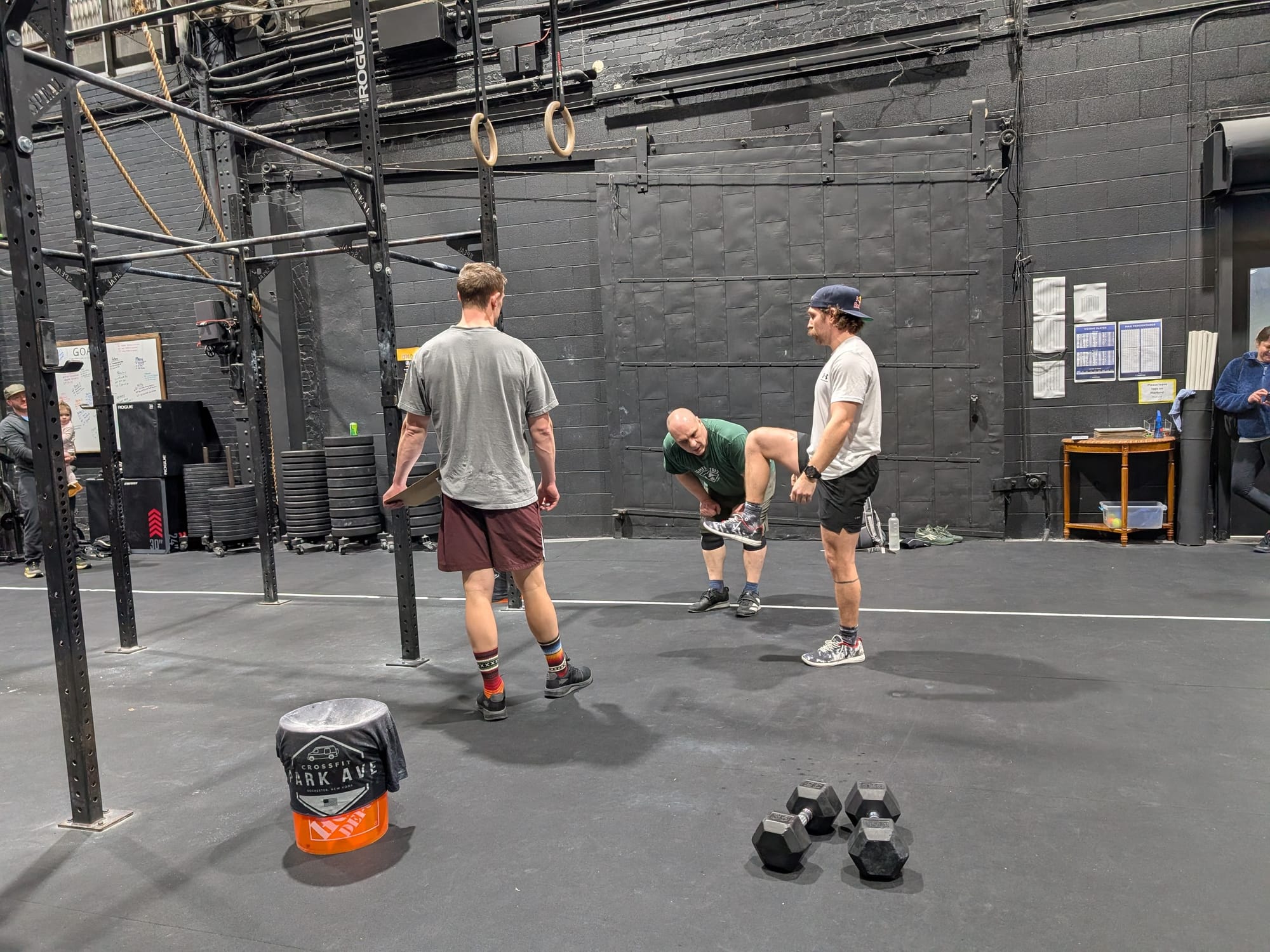 Several people were there to watch and cheer and he had no shortage of advice being directed his way. He's very, very close, but couldn't quite get over the bar. Really powerful chest-to-bar pull-ups, though.